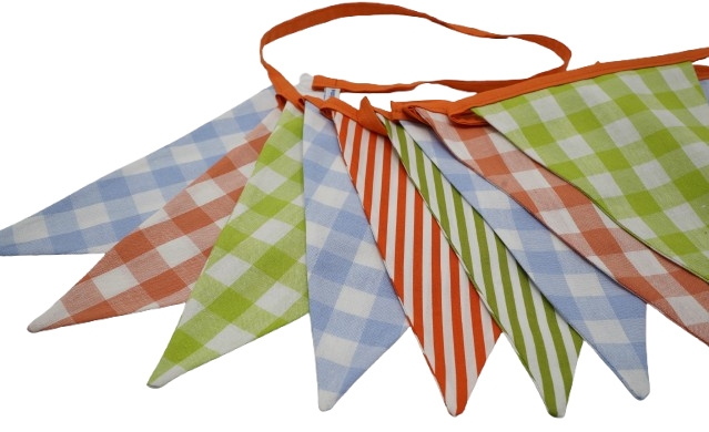 Overzicht7 meter vlaggenlijn met 24 vlaggetjes van dubbele stof