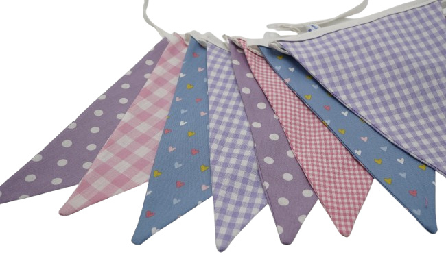 Overzicht- 7 meter vlaggenlijn met 24 vlaggetjes van dubbele stof